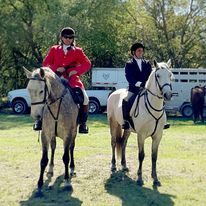 The coat should be black or navy with a black collar and black buttons. A canary vest, buff or canary britches, a white stock shirt and stock tie properly tied with a horizontal, plain gold, stock pin. Black boots with plain tops are required. Ladies’ hair should be secured by a hairnet. Junior members may wear Ratcatcher attire.