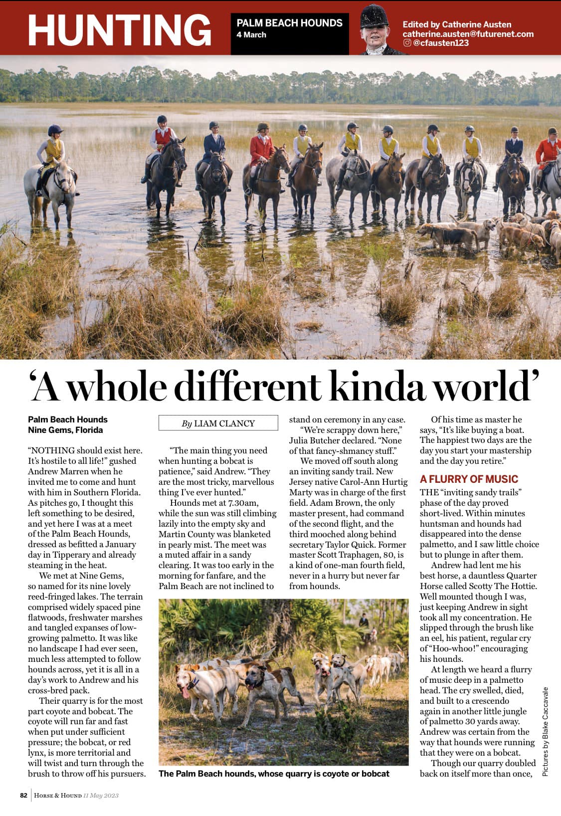 Horse & Hound came from across the pond to ride with Palm Beach Hounds.  Read all about Liam Clancy’s experience hunting in South Florida.
