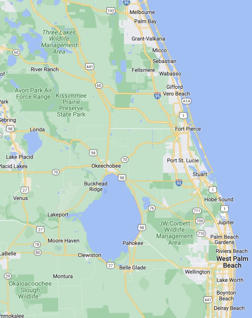From the South: take either I-95 or the Florida Turnpike north to PGA Boulevard then west to State Road 710 (a.k.a. Beeline Highway), then right (northwest) to the foot of the bridge over the St. Lucie waterway, then turn west on State Road (SR) 76 approximately 5-miles to Dupuis Gate 1 entrance.
